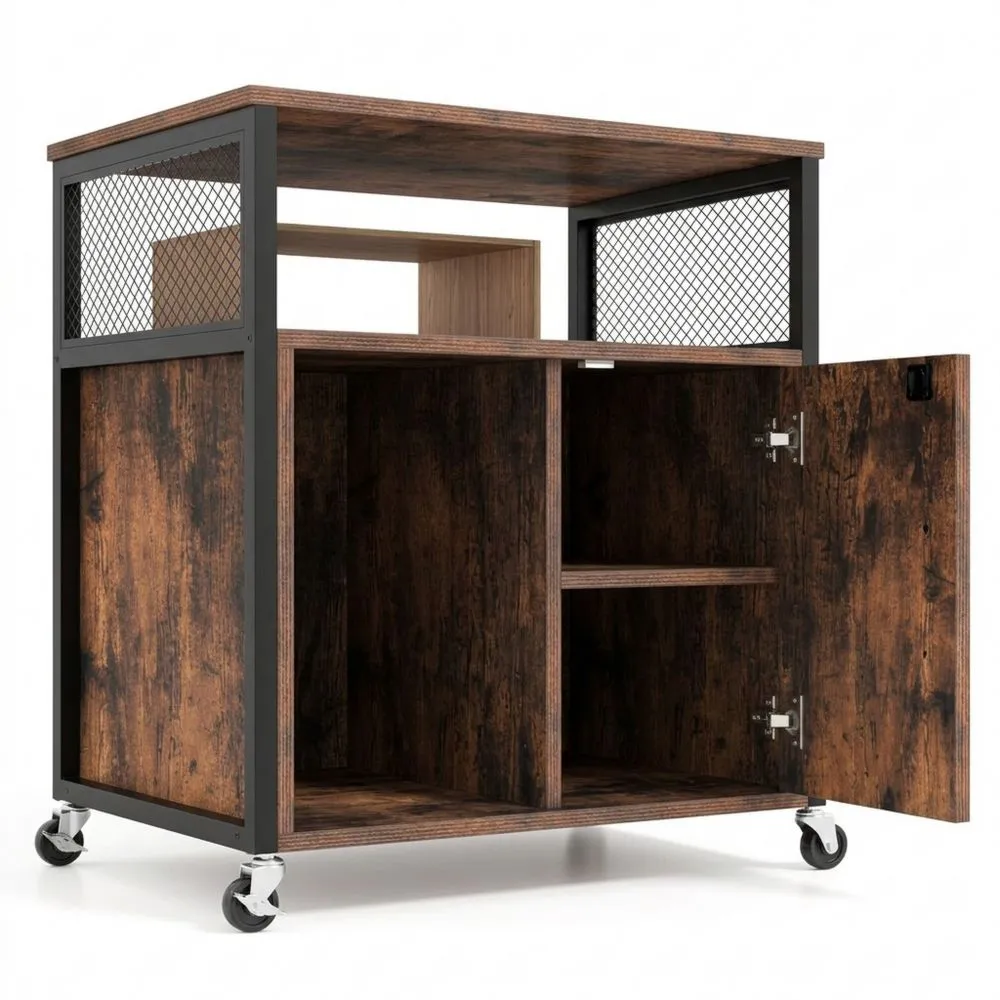 Este archivador horizontal ofrece una amplia superficie superior, un estante abierto, un armario lateral y 2 compartimentos para mantener los elementos esenciales de la oficina al alcance. Incluye un orificio para la gestión de cables. Cuenta con una estación de carga incorporada con 2 enchufes (220-240V / 12A), 2 puertos USB y 1 puerto Type-C (5V/3.1A). El cable de alimentación de 150 cm facilita la conexión. Los compartimentos de almacenamiento en el lado derecho tienen 5 posiciones ajustables (3cm por nivel) para acomodar diferentes tamaños de artículos. Incluye un armario lateral con cerradura para artículos personales o documentos confidenciales, con dos llaves. El marco metálico garantiza una estructura estable y proporciona una capacidad de carga de 105kg. Equipado con cuatro ruedas giratorias de 360 grados, todas bloqueables. Funciona como un archivador móvil versátil adecuado para diferentes estilos de decoración en oficinas, estudios o dormitorios. También puede ser usado como mesita de noche o armario de almacenamiento.