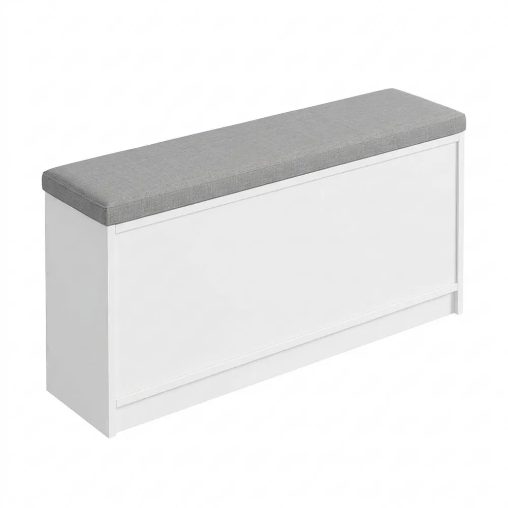 El banco zapatero con cajones plegables ofrece un diseño compacto que ahorra espacio y es fácil de abrir y cerrar. Las estanterías de cada cajón son extraíbles o ajustables en 2 posiciones para satisfacer diferentes necesidades de almacenamiento de zapatos. El asiento acolchado con funda de tela proporciona un lugar cómodo para cambiarse de zapatos. Las dimensiones generales del zapatero son de 41.7" de largo x 12.4" de ancho x 20.5" de alto, con capacidad para almacenar alrededor de 8-12 pares de zapatos. Este mueble es adecuado para usar en dormitorios, apartamentos, pasillos, entradas o habitaciones de estudiantes, integrándose en la decoración de su hogar. La fácil instalación se logra con un diagrama detallado y piezas numeradas.